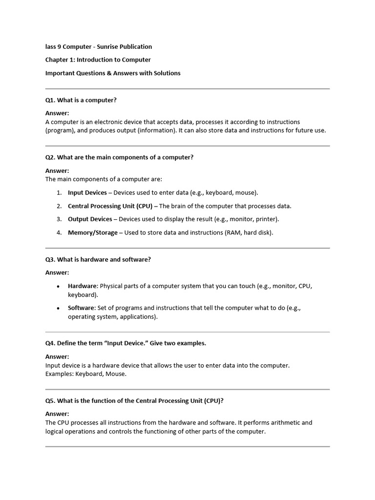 1. Input Devices – Devices used to enter data (e.g., keyboard, mouse).