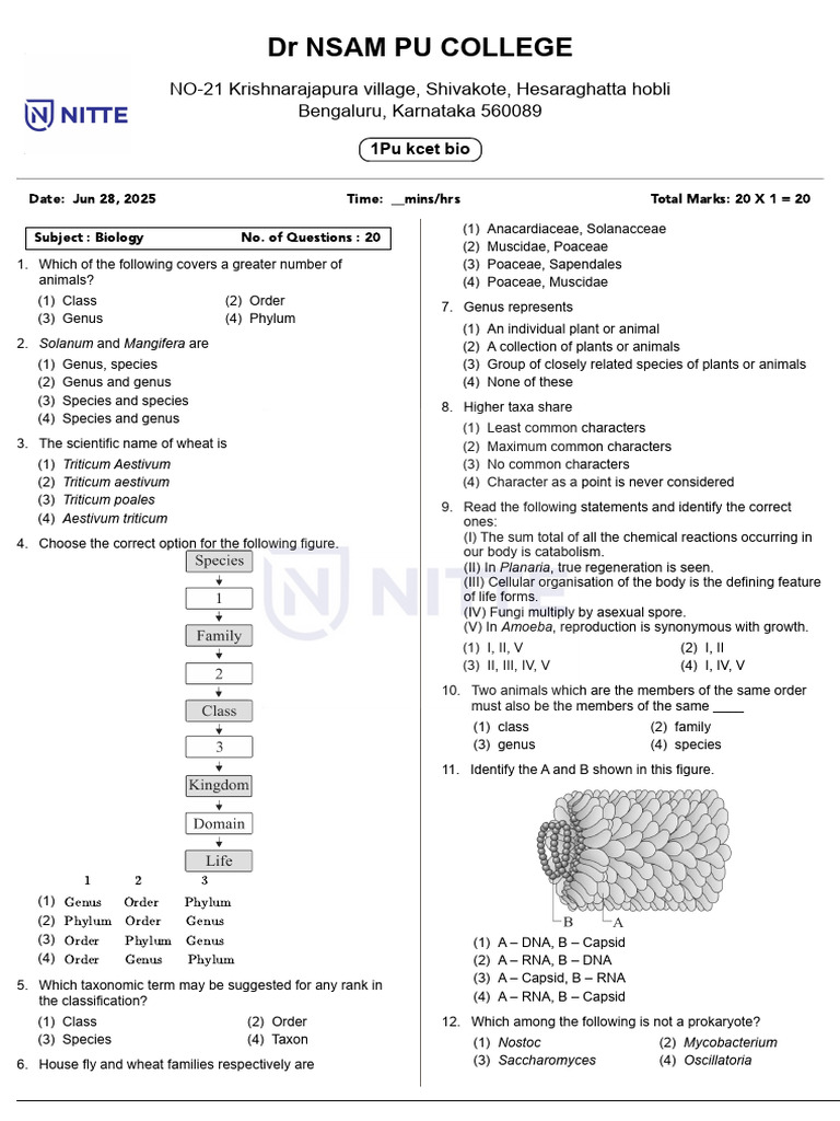 (1) Class (2) Order 12. Which among the following is not a prokaryote?