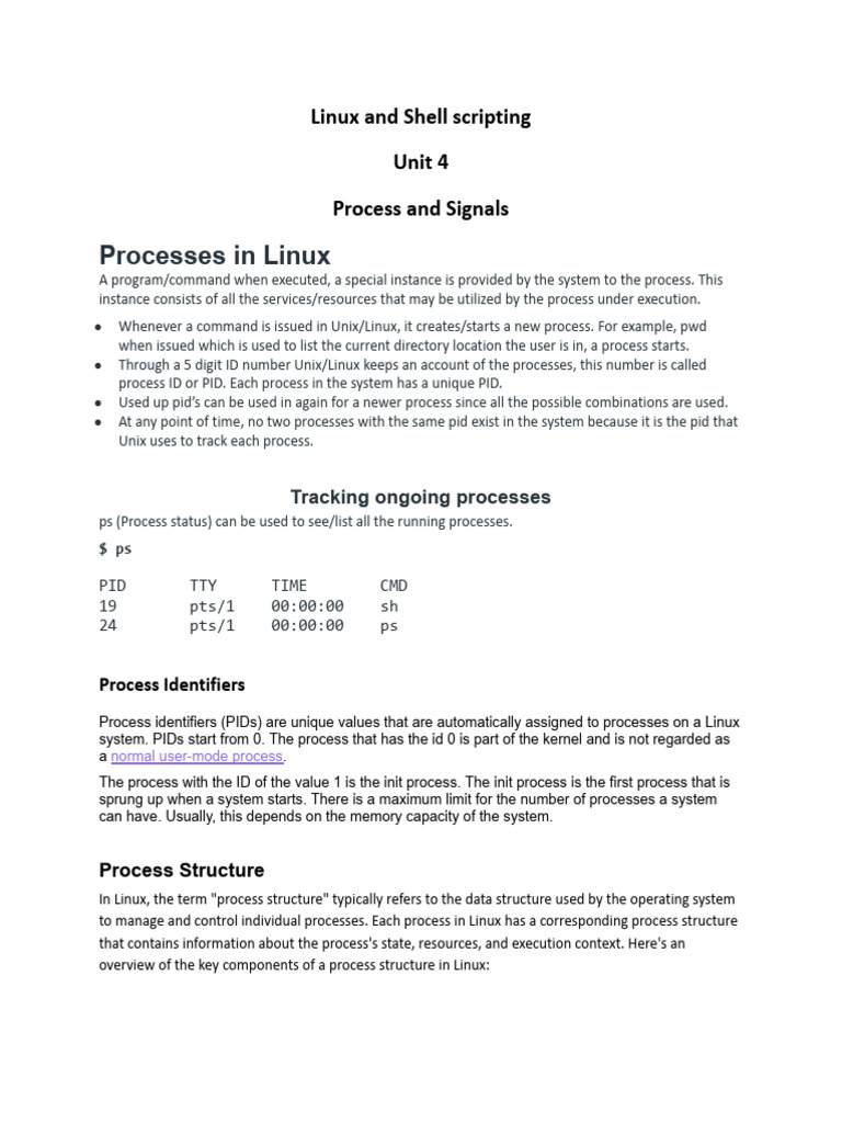 system. PIDs start from 0. The process that has the id 0 is part of the kernel and is not regarded as