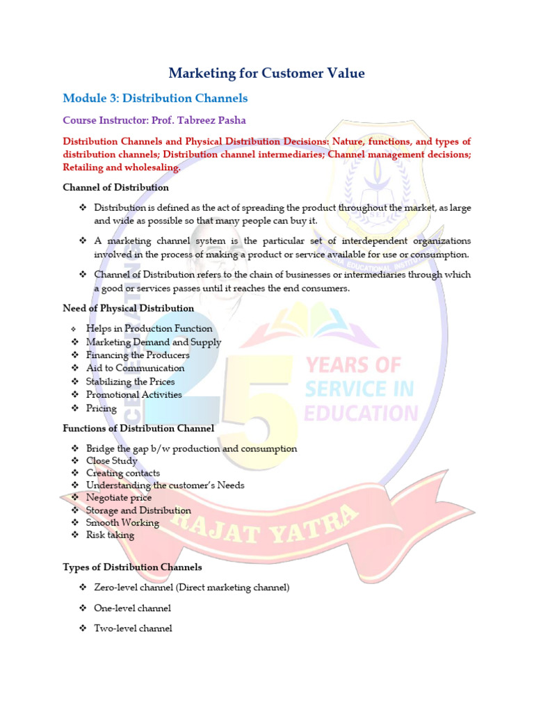 Distribution Channels and Physical Distribution Decisions: Nature, functions, and types of