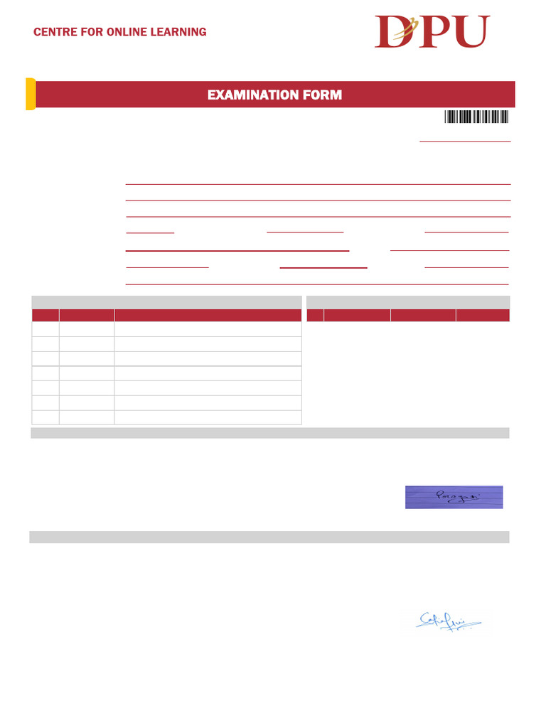 EXAMINATION FORM
