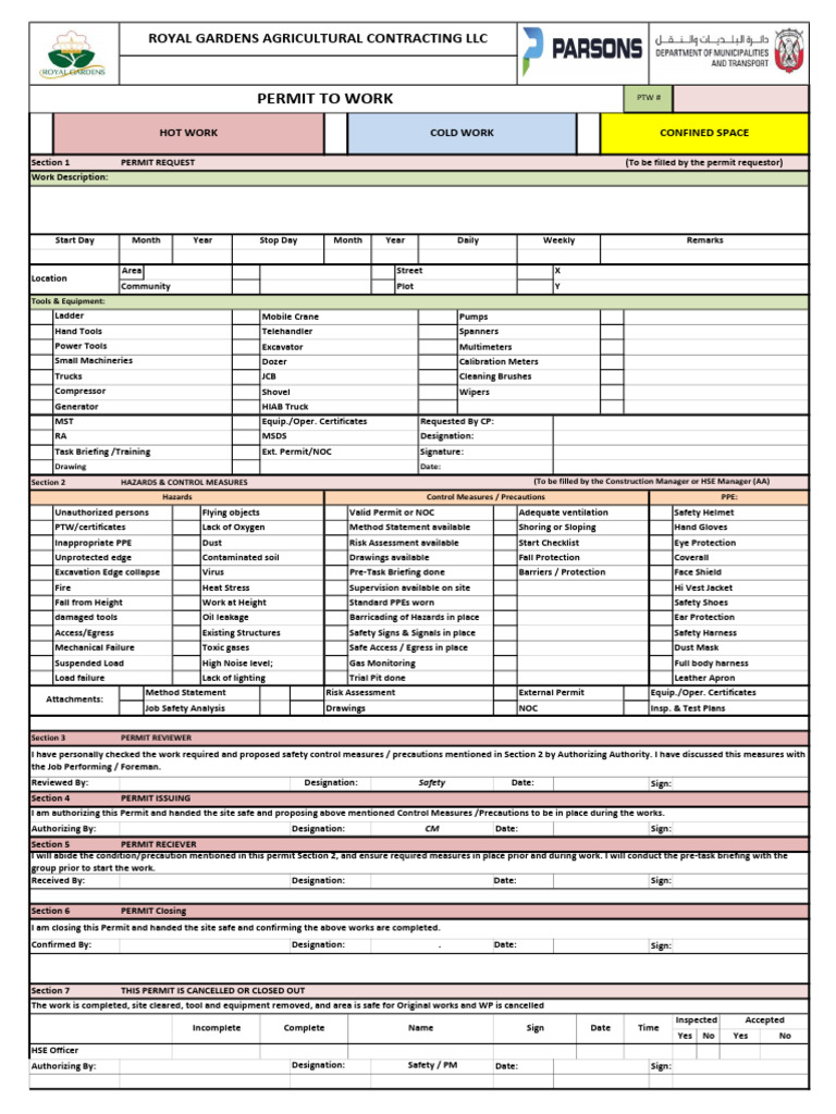 Authorizing By: Designation: Safety / PM Date: Sign: