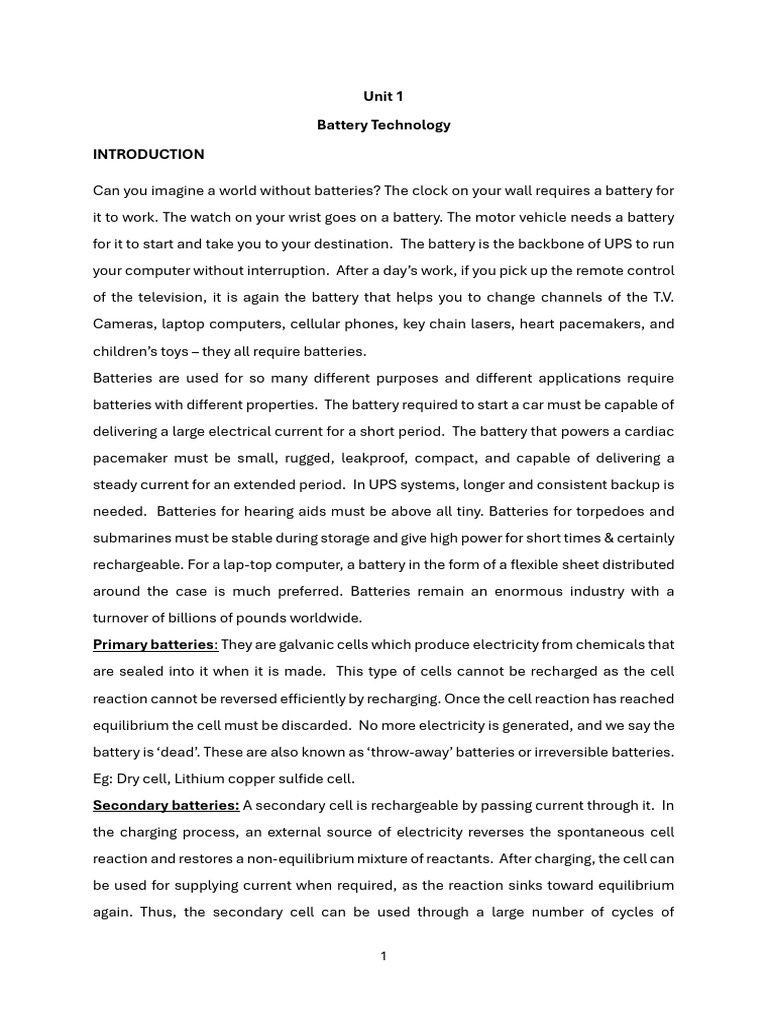 Primary batteries: They are galvanic cells which produce electricity from chemicals that