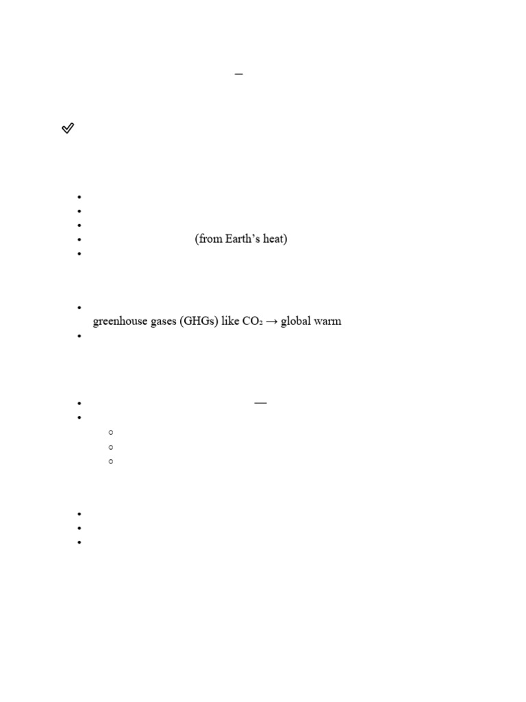greenhouse gases (GHGs) like CO₂ → global warming.