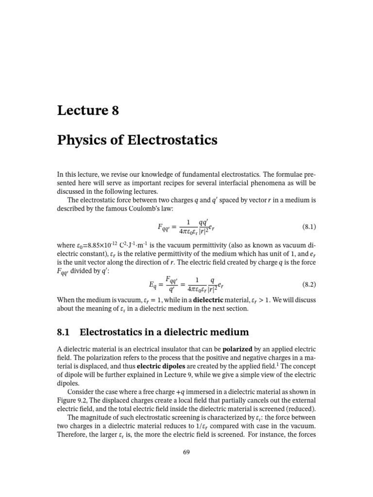 In this lecture, we revise our knowledge of fundamental electrostatics. The formulae pre-