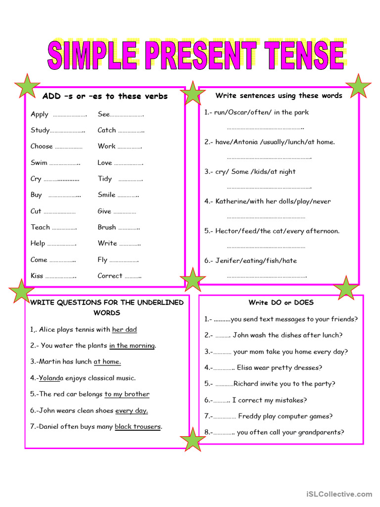 ADD –s or –es to these verbs Write sentences using these words