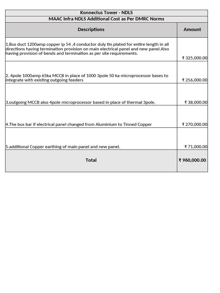 MAAC Infra NDLS Additional Cost as Per DMRC Norms