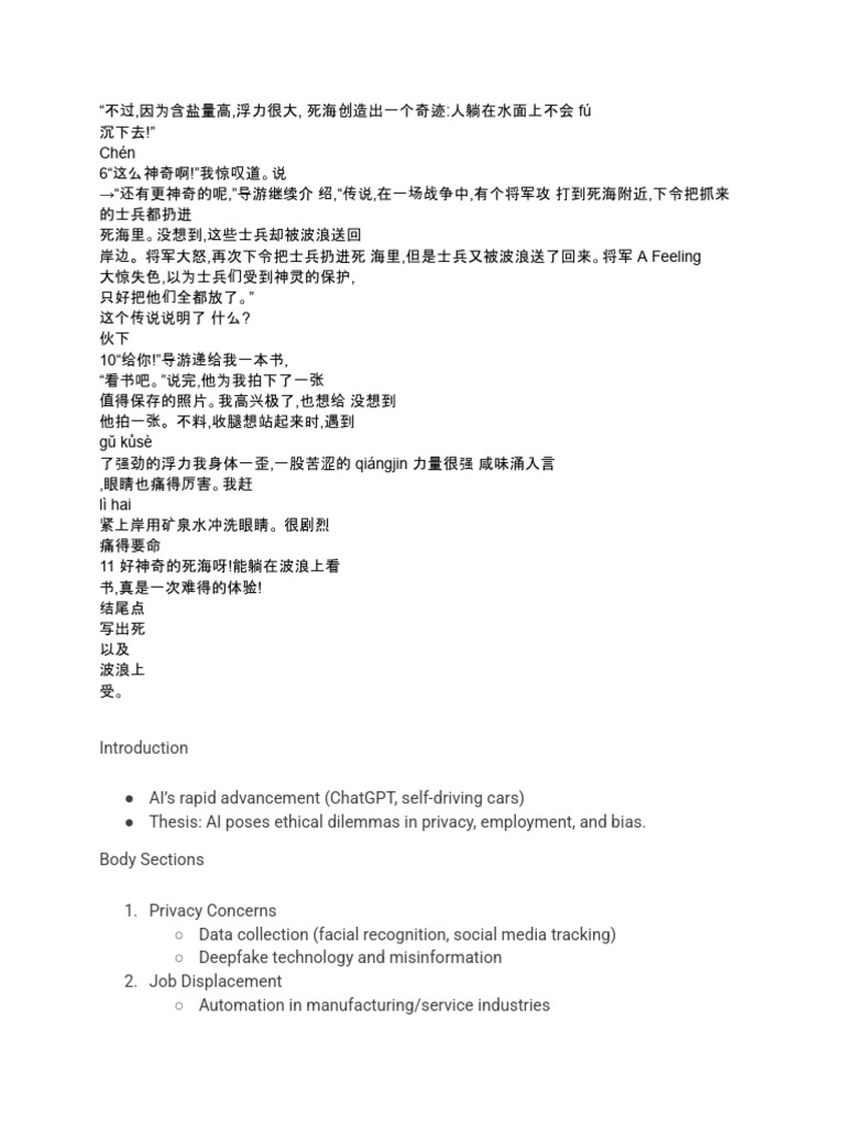 ● Thesis: AI poses ethical dilemmas in privacy, employment, and bias.