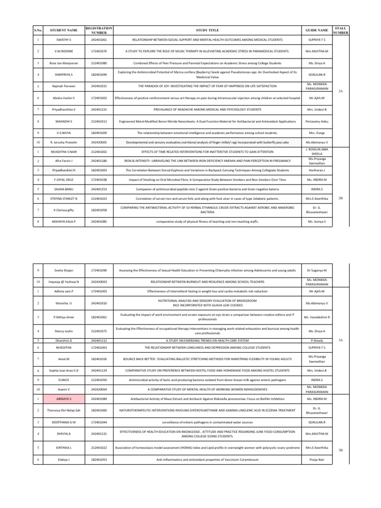 Students Stall List