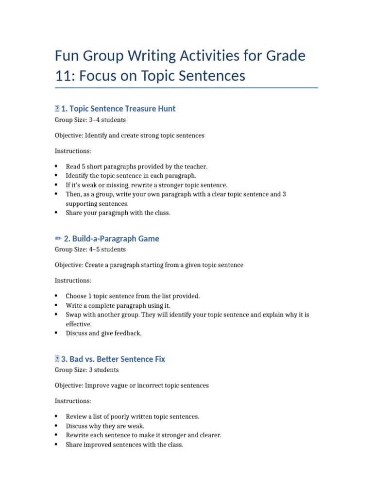 ✨ 1. Topic Sentence Treasure Hunt