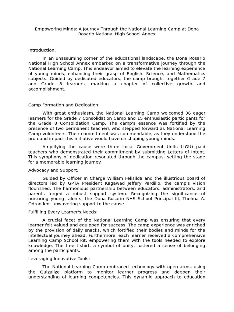 Empowering Minds: A Journey Through the National Learning Camp at Dona