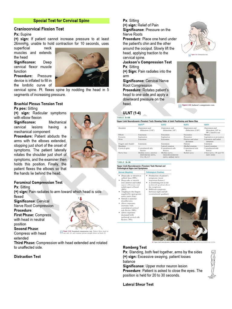 degrees, elbow straight and 6. Quick repeated head movement into provocative position*