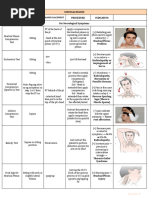 Procedure: 1. While standing behind the pt, the examiner Procedure: 1. While standing at