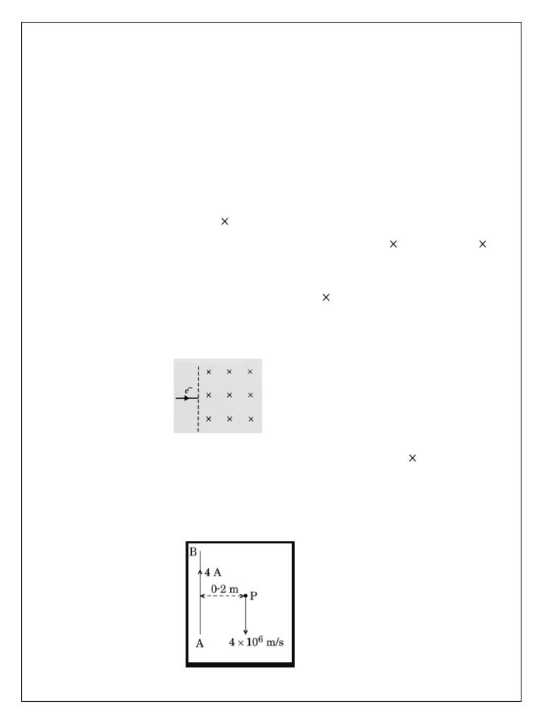 4. An electron moving horizontally with a velocity of 4×104 m/s enters a region of uniform