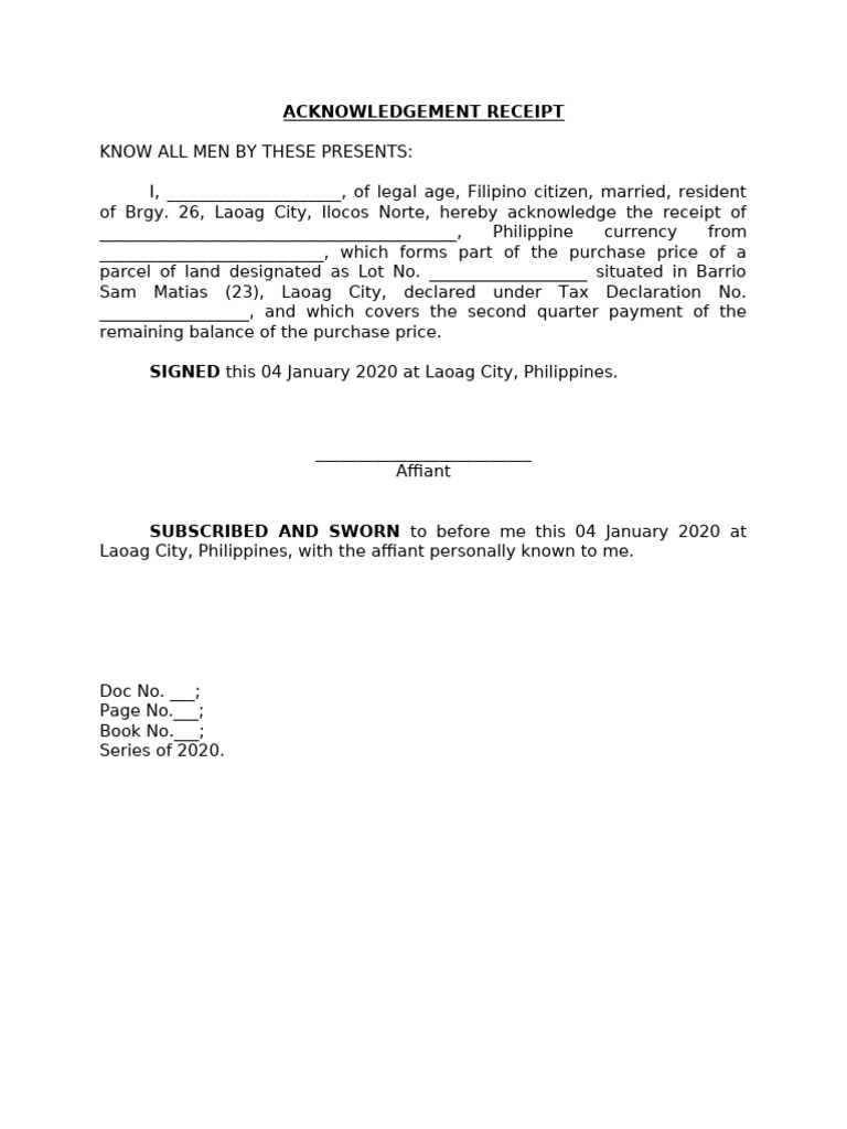 ACKNOWLEDGEMENT RECEIPT