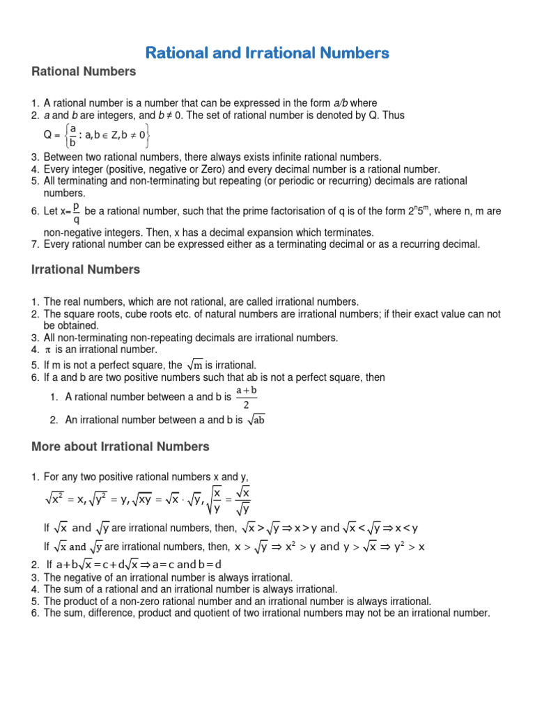 Rational and Irrational Numbers