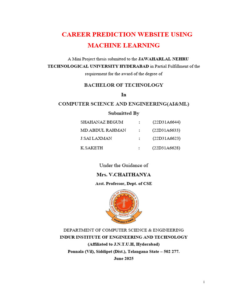 This is to certify that the thesis “CAREER PREDICTION WEBSITE