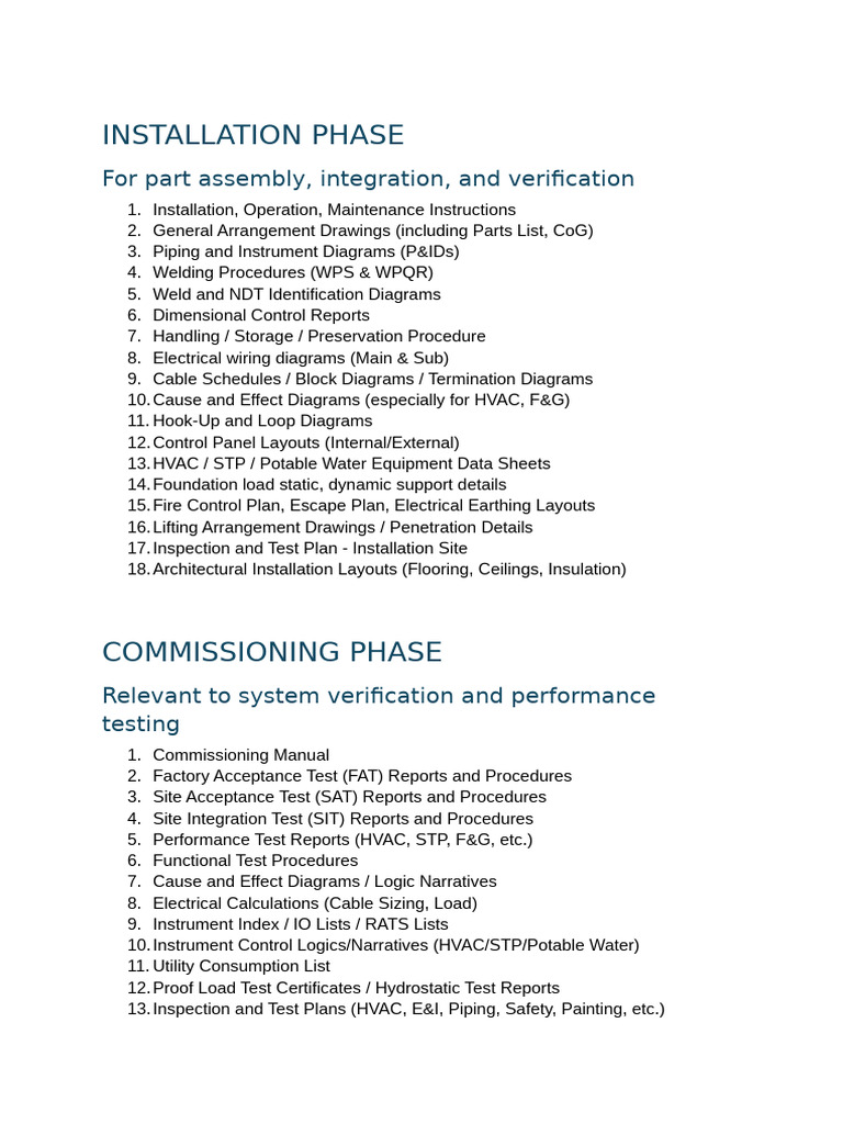 13. Inspection and Test Plans (HVAC, E&I, Piping, Safety, Painting, etc.)