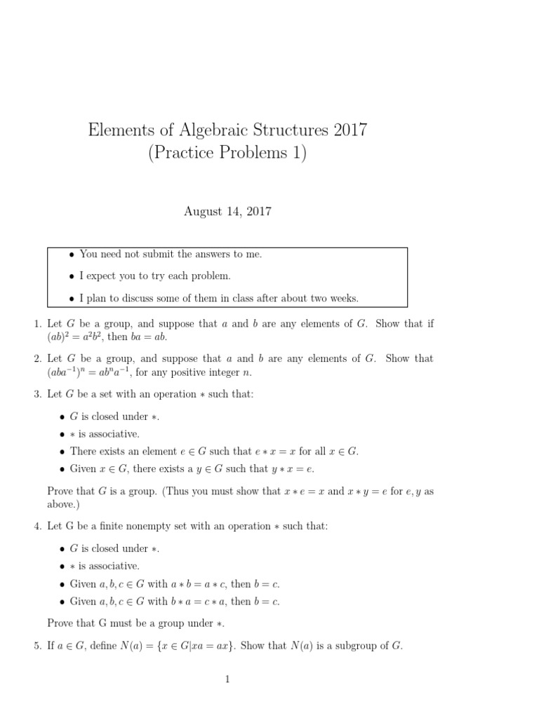 1. Let G be a group, and suppose that a and b are any elements of G. Show that if