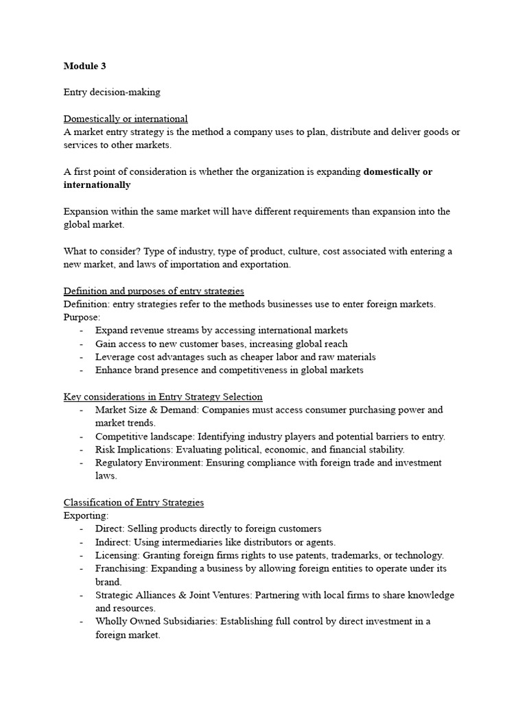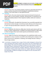 - Franchising: Expanding a business by allowing foreign entities to operate under its