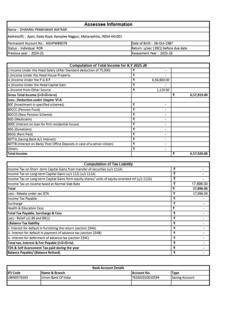 Gross Total Income (i+ii+iii+iv+v) ₹ 6,57,919.00