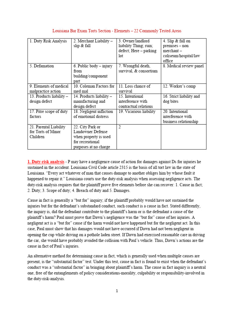 to the plaintiff. For most Torts questions on the Louisiana bar exam, the Pitre factors do not need to be