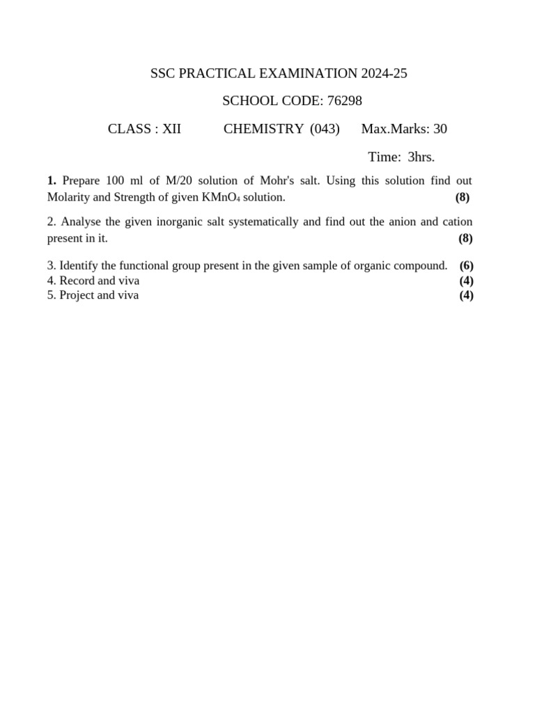 CLASS : XII CHEMISTRY (043) Max.Marks: 30