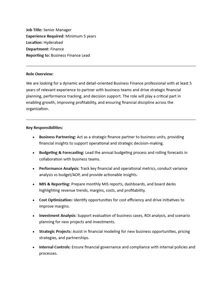 We are looking for a dynamic and detail-oriented Business Finance professional with at least 5