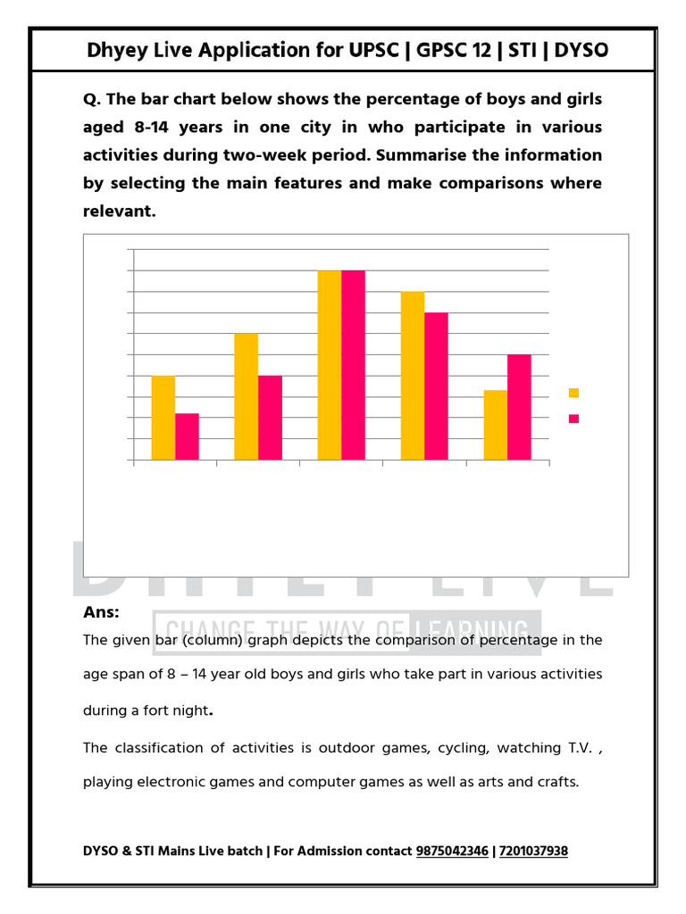 age span of 8 – 14 year old boys and girls who take part in various activities