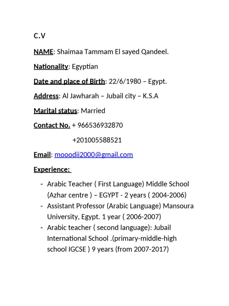 NAME: Shaimaa Tammam El sayed Qandeel.