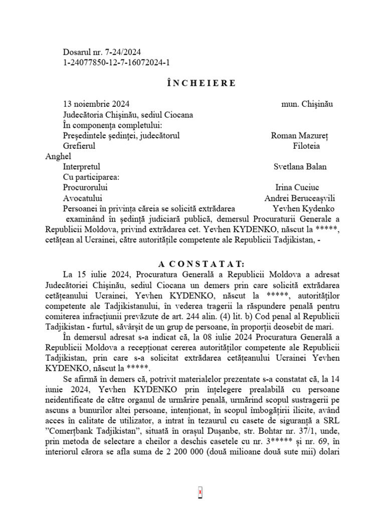 Tadjikistan, prin care s-a solicitat extrădarea cetățeanului Ucrainei Yevhen