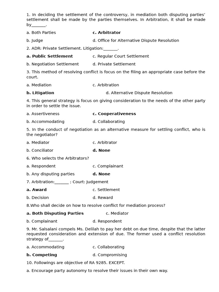 14. If the disputing parties failed to come-up with alternatives in settling conflict, who