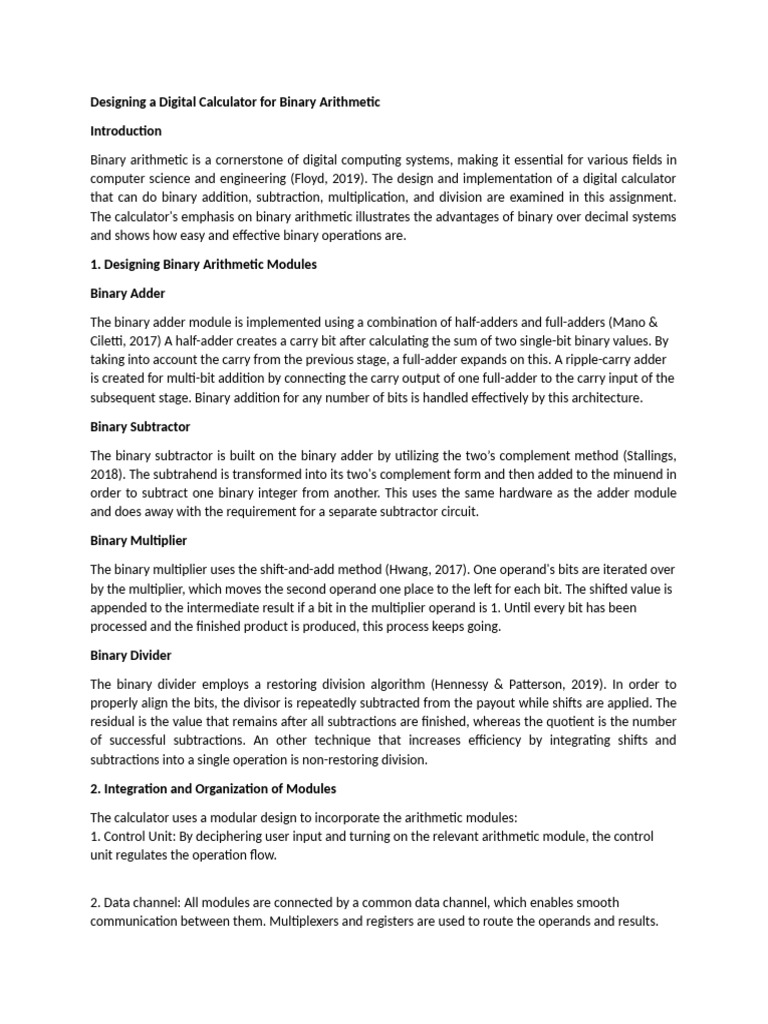 computer science and engineering (Floyd, 2019). The design and implementation of a digital calculator