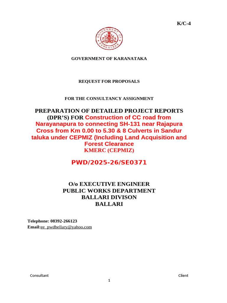 Reports (DPR’s) for the Improvements of Roads under KMERC(CEPMIZ). Interested