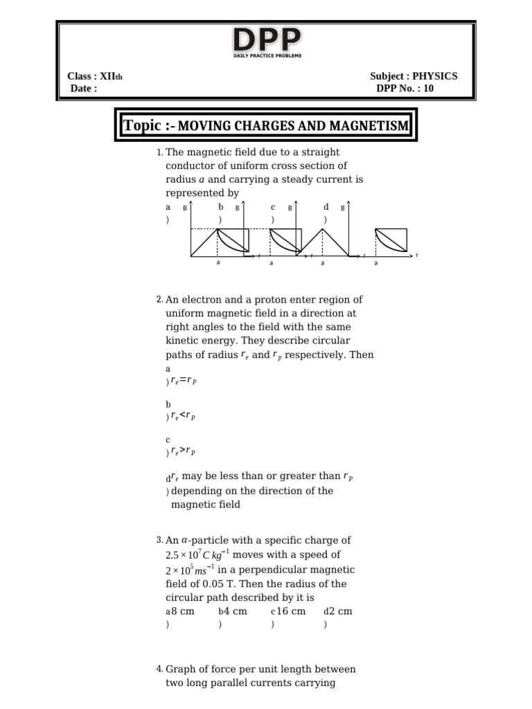 Topic :- MOVING CHARGES AND MAGNETISM
