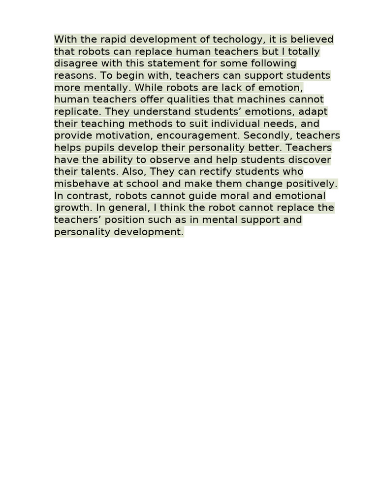 that robots can replace human teachers but I totally