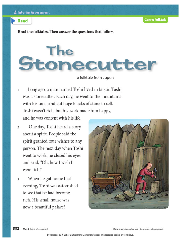 1 Which sentence from “The Stonecutter” best tells about the picture on