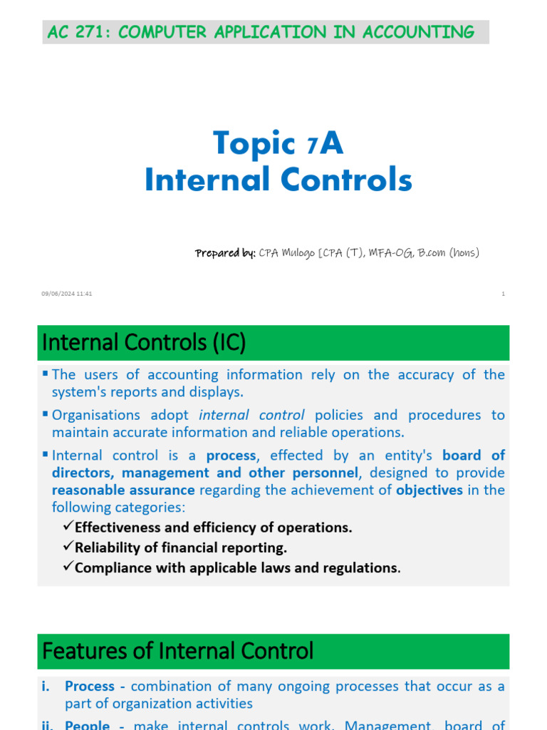 AC 271: COMPUTER APPLICATION IN ACCOUNTING