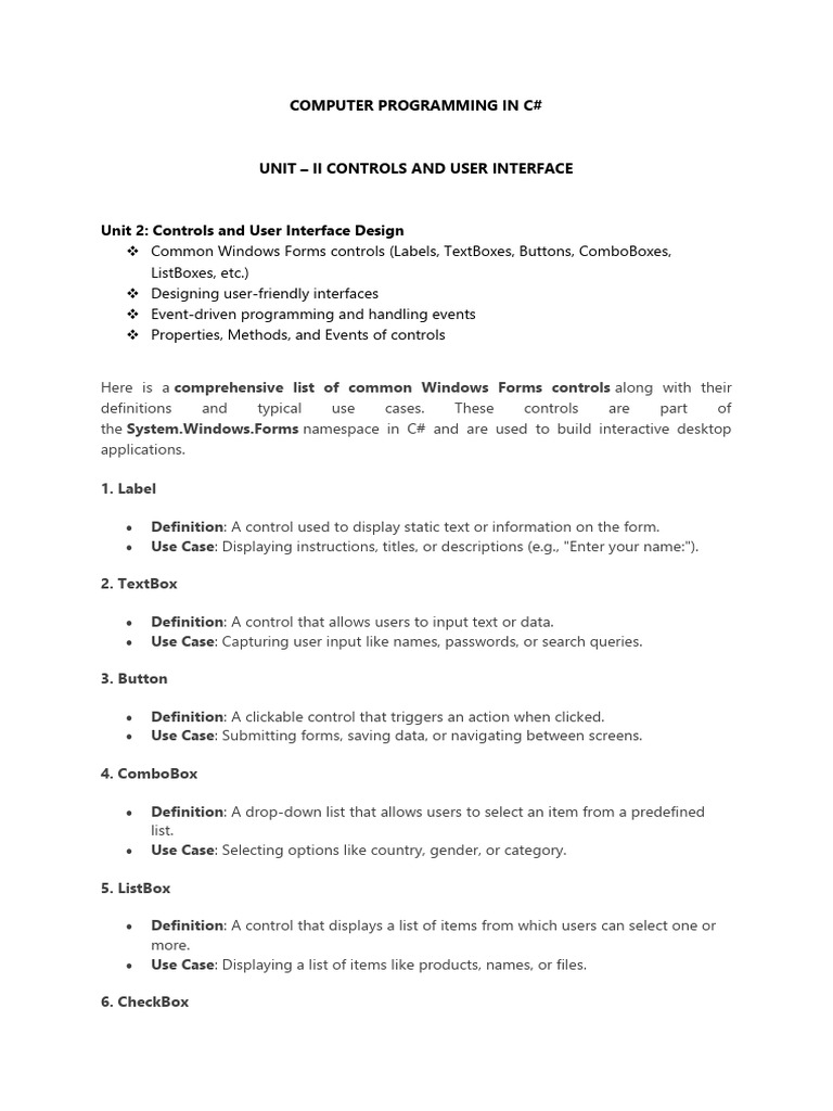 ❖ Common Windows Forms controls (Labels, TextBoxes, Buttons, ComboBoxes,