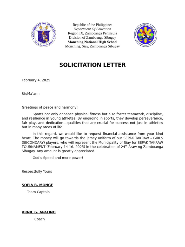 heart. The money will go towards the jersey uniform of our SEPAK TAKRAW – GIRLS