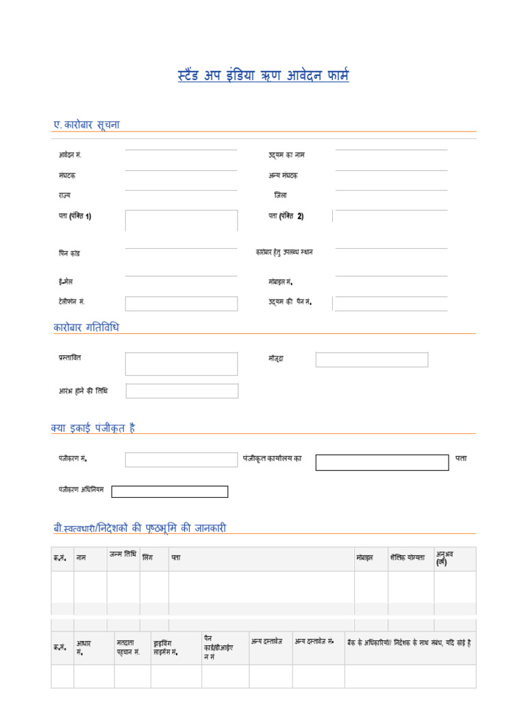 इकाई हेत ु उधार लेन े के लए कोई यव था नह ं है| मेरे/हमारे ऊपर कोई अ तदेय/सां व धक देय नह ं है| म/हम, मेरे/हमारे आवेदन के संबंध म बक वारा अपे त अ य सभी