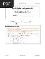 Pre-Calculus 11 Unit 1 Send-In Assignment On-Line Course