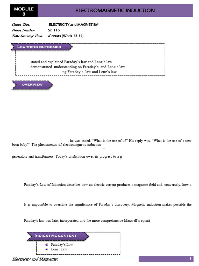 force) across the electrical conductor. Michael Faraday discovered Law of Induction in 1830.