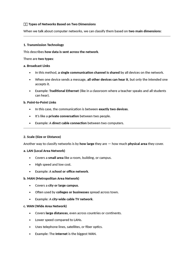 Of course! Let’s go through the types of networks — PAN, LAN, MAN, WAN, and the Internet — just