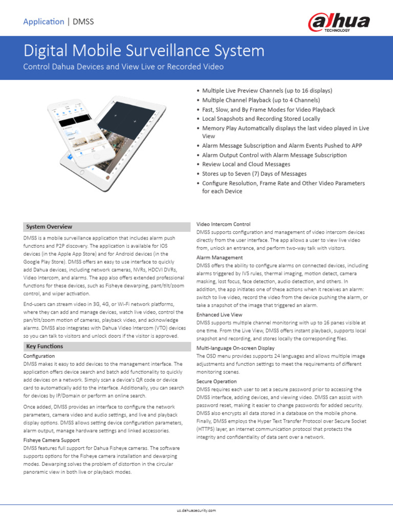 DMSS is a mobile surveillance application that includes alarm push directly from the user interface. The app allows a user to view live video