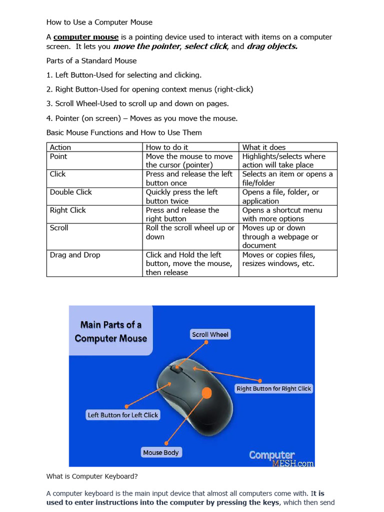 3. Scroll Wheel-Used to scroll up and down on pages.