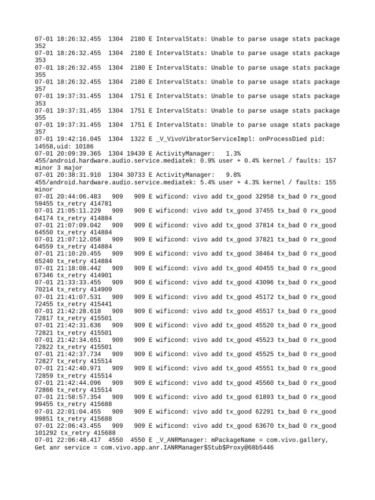 07-01 [Link].017 1304 1322 E _V_VivoVibratorServiceImpl: onProcessDied pid: