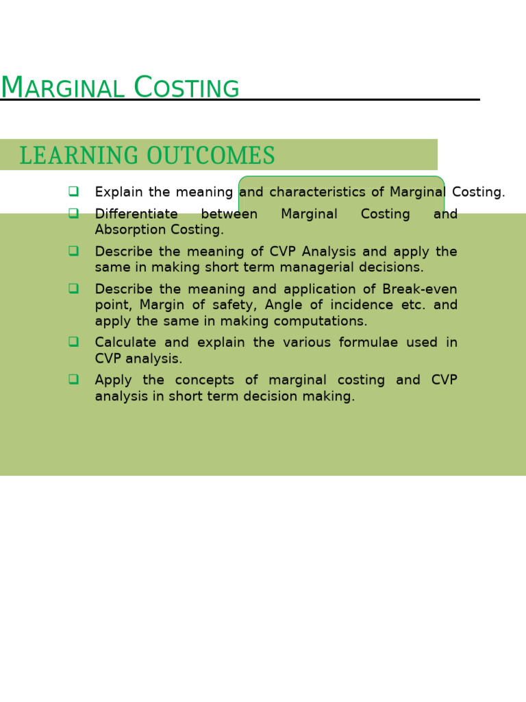 Apply the concepts of marginal costing and CVP