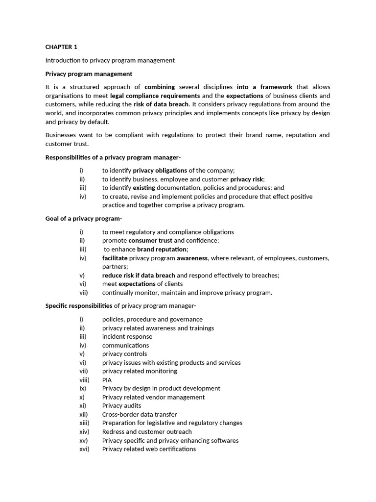 Managing privacy requires contribution and participation of many functions of that organisation.