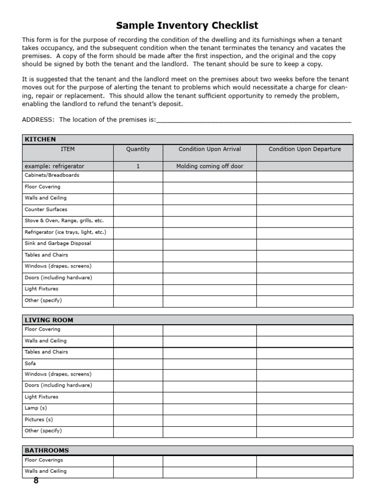 This form is for the purpose of recording the condition of the dwelling and its furnishings when a tenant